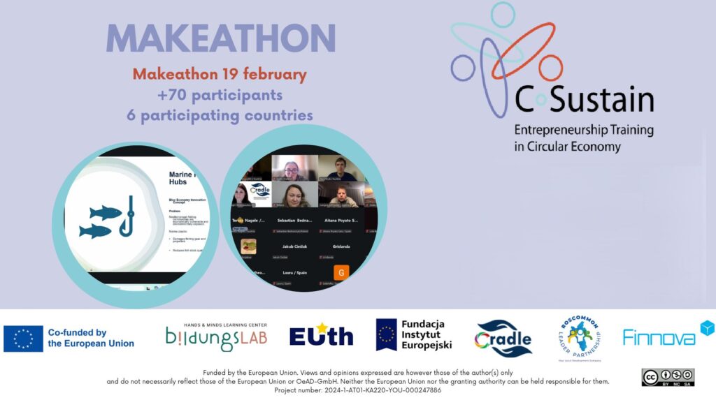 Jednym z kluczowych formatów pracy w projekcie są makeathony – intensywne wydarzenia łączące pracę warsztatową, rozwijanie pomysłów biznesowych i współpracę w zespołach. Przykładem jest międzynarodowy makeathon, w którym udział wzięło 70 młodych Europejczyków, pracujących nad rozwiązaniami z zakresu gospodarki o obiegu zamkniętym, od zarządzania odpadami z tworzyw sztucznych po ograniczanie zużycia opakowań. Uczestnicy tworzyli koncepcje zielonych startupów, korzystając ze wsparcia mentorów i odniesień do ram GreenComp oraz EntreComp.